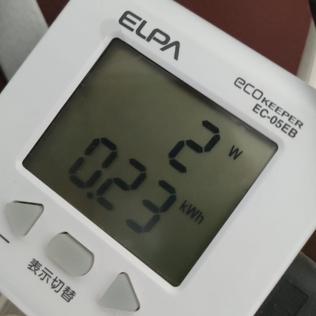 電源を切ると 0 W となりました.待機電力は十分少ないようです.
