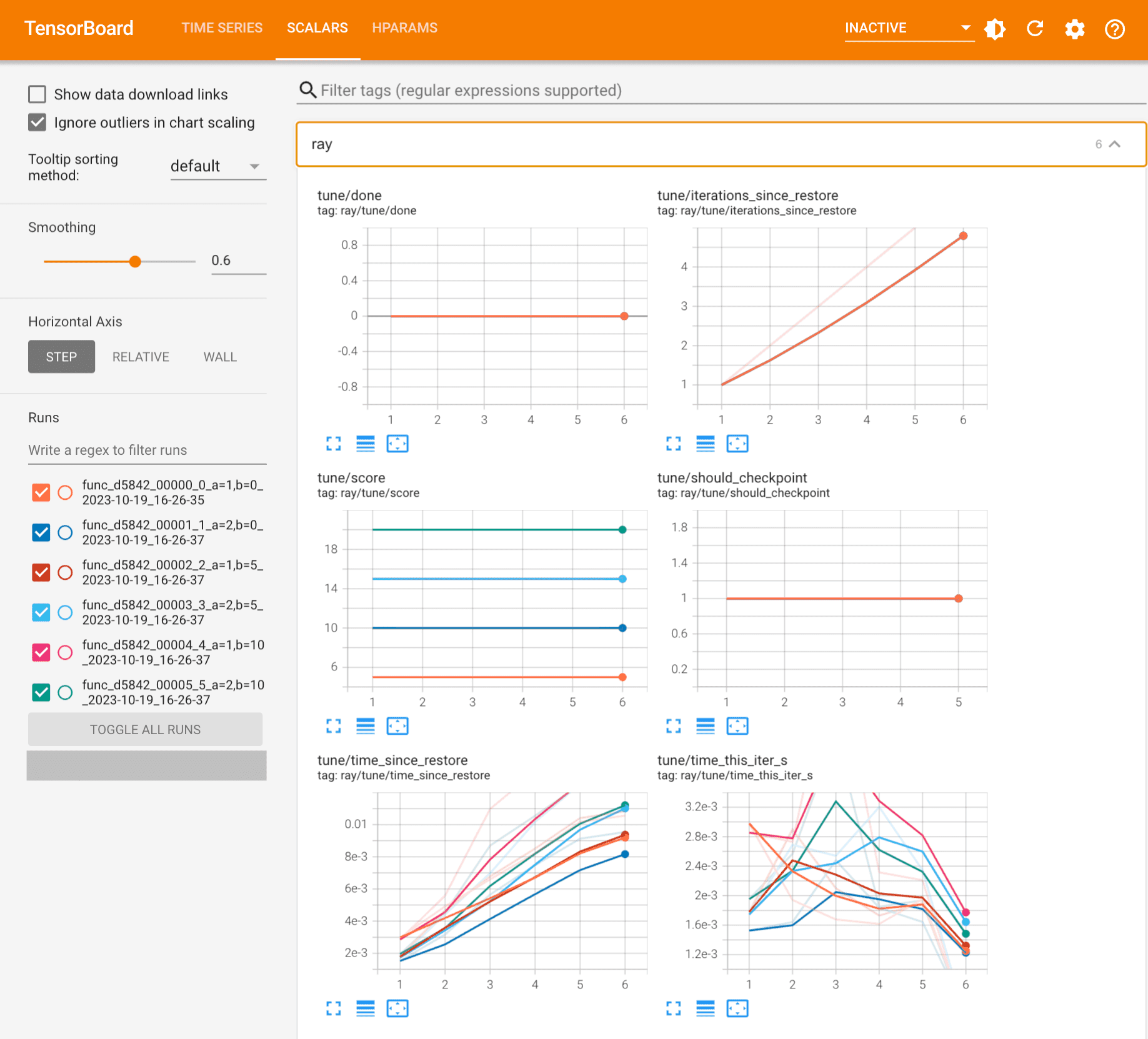 Ray Tune には可視化ツールは含まれていないようですが,TensorBoard に対応してるようです*8.